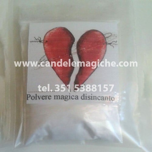 Polvere magica Disincanto serve per rompere un’incanto d’amore, un legamento. Disincanta la persona che è stata plagiata e incantata in amore. Bustina 12/15 g.