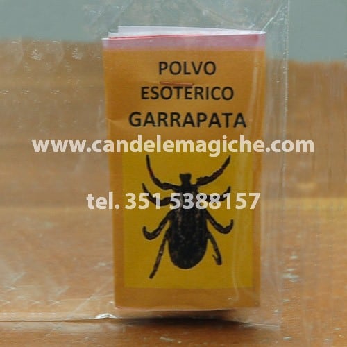 La polvere Garrapata serve per conquistare un uomo o una donna e fare in modo che si attacchi come una zecca a voi. Bustina da 12/15 gr.