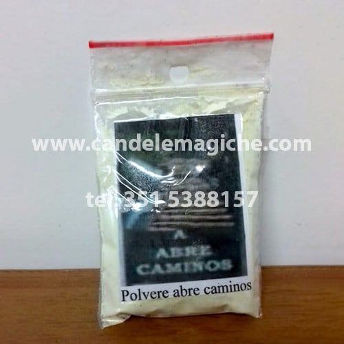 Polvere magica Abre Caminos, impiegata nella ritualistica, apre le strade per tutti i successi della vita. Confezione da 12/15 gr circa.