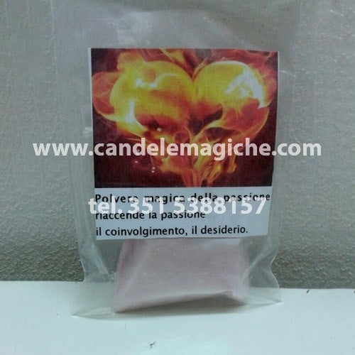 Polvere magica Passione, usata nella ritualistica crea passione, coinvolgimento, risveglio sessuale. Bustina 12/15 g.