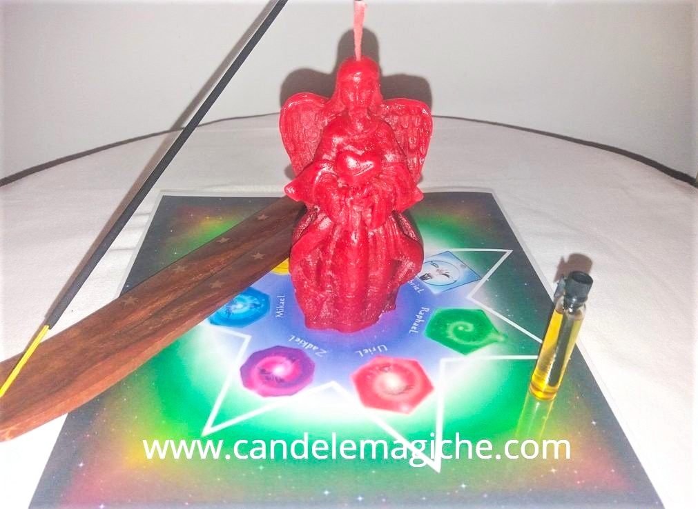 Kit: istruzioni, candela figurata Uriel, incenso, essenza, tovaglietta plastificata.
